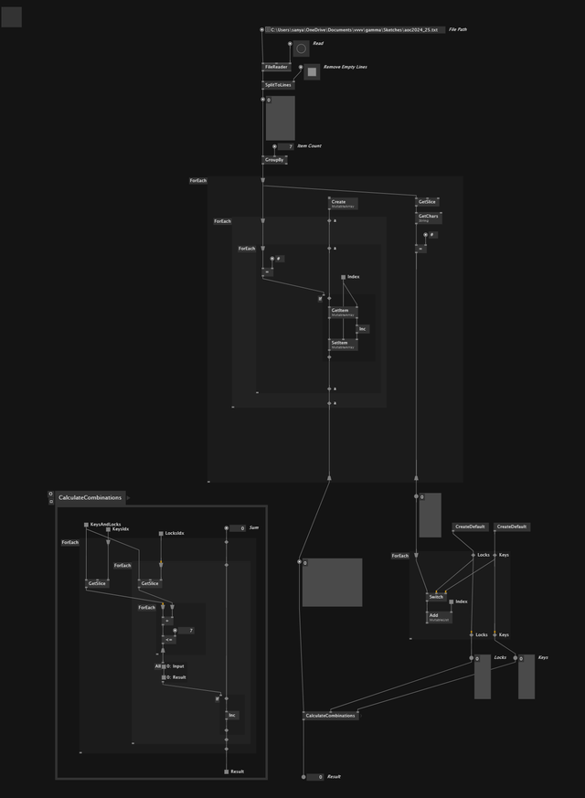 📍 Day 24: Crossed Wires - симуляция логической схемы из логических вентилей. Во второй части нужно найти какие четыре пары из вентилей переставлены местами — в общем случае полный перебор не подходит, нужно понять что именно делает схема, чтобы определить, как именно конкретные вентили влияют на выход системы.